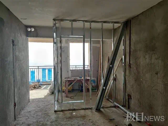 3月2日上午,极目新闻记者来到位于蔡甸区天鹅湖大道上的朗诗西海岸,肖先生带领记者进入了5号楼一个小户型房,一个像铁笼子的隔房出现在眼前,面积约为5平方米,一旁还有装修师傅在进行水电施工。