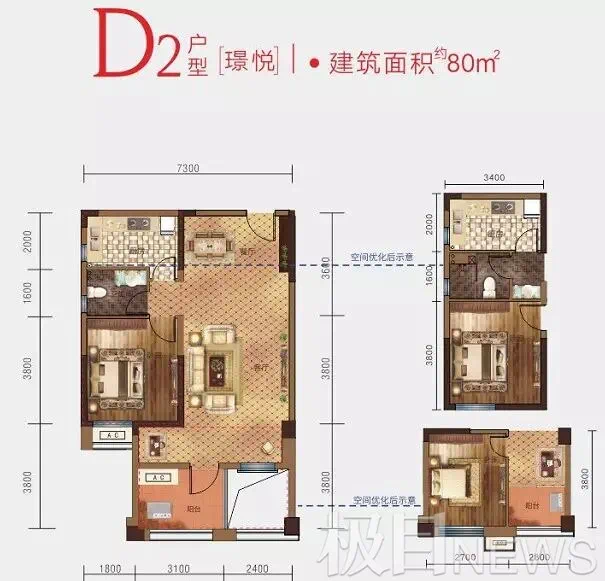魏女士提供的该项目最初的宣传示意图显示,3种面积的户型都进行了空间优化前后的对比,天台现浇、可拓空间大都是宣传图上的亮点。