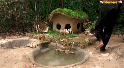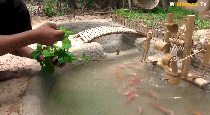 细心的小哥还在池塘里放了鲤鱼和叶子,