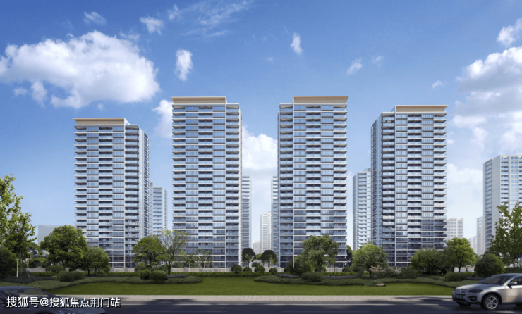 8栋高层建筑呈大围合布局,每一栋都在四面大面积铝板建筑立面、外墙三玻两腔LOW-E玻璃的基础上,注入崭新设计灵感,顶部暖色“皇冠”格栅,打上了湖畔高颜值标签。