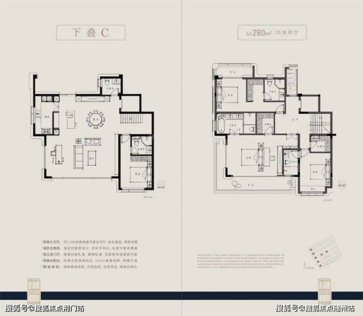 户型方面,主力建面约210-280㎡四层叠墅,采用全套房设计,朝南大开间阳光满堂,主卧“小家化”,步入式衣帽间和独立卫浴间兼备,更大尺度的面积,更开阔的家庭社交区,更舒适的套房空间。约6米层高地下空间,多出一大片公共活动空间。大部分下叠设计了双采光井,在地下室也可以获得充分的自然光。