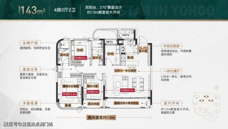 约13米南向面宽+约6.5米阳台,约27㎡LDKB一体洄游社交场,