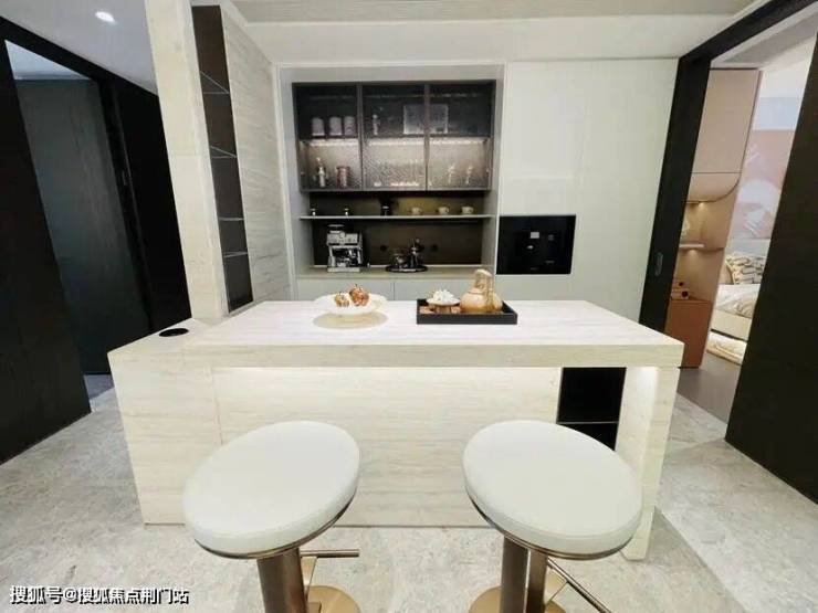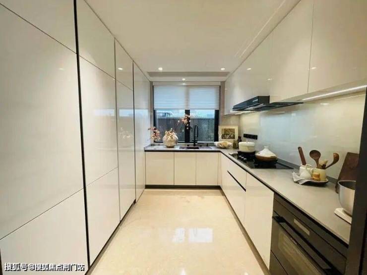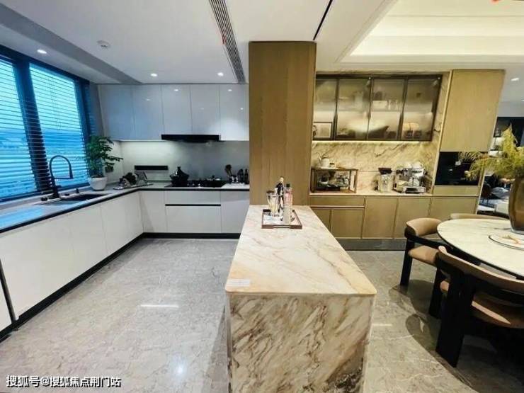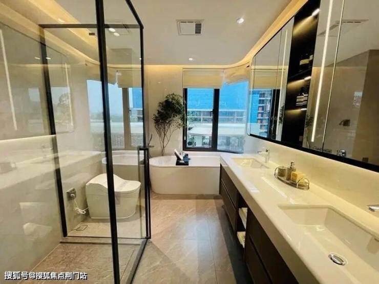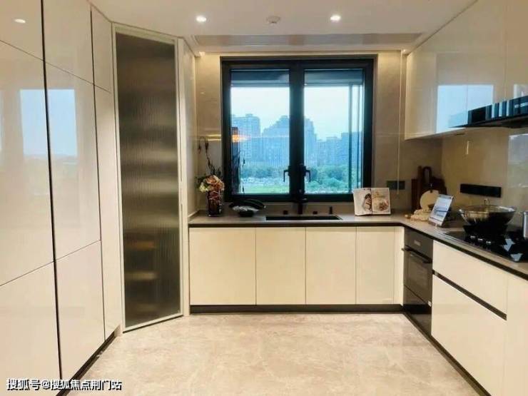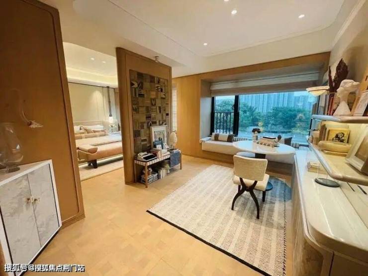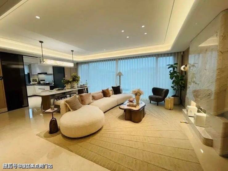 最受欢迎的是185㎡,样板房的设计中,餐厨房、书房和客厅几乎都打通,空间十分开阔。主卫采光绝佳,设计了转角圆弧玻璃窗。