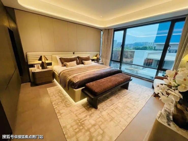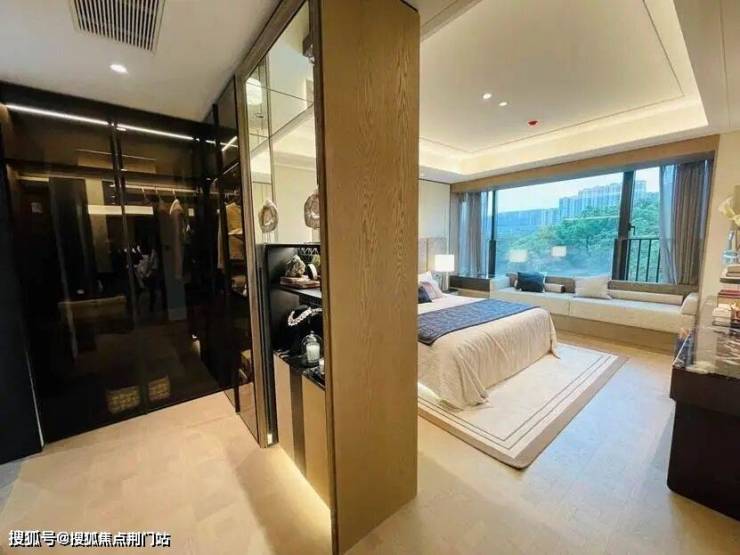 160㎡户型样板房的风格更柔和年轻化,主卧的套房设计非常大,包含了卧室和更私密的会客厅。