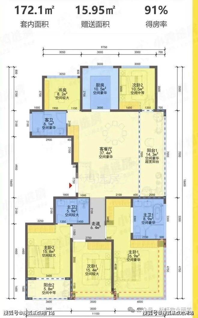 2)139方A1南厅户型,4房2厅2卫,得房率86% 中天海威·璟逸:学区划分、周边配套(地铁/商超/医院)、2026购房政策深度解读。