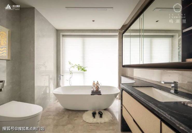 起居间的大体量衣柜免去后期定制,卫生间地面、墙面大理石通铺,汉斯格雅、唯宝等国际一线卫浴品牌集结,连美妆冰箱都配备。