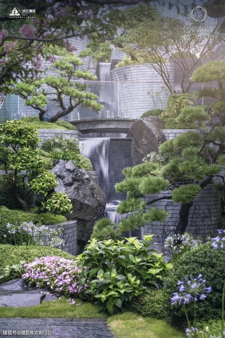 假山与叠石自带高低差,水瀑顺势而下、涓流成溪,高处又有一帘水幕如珠玉落盘,与摇曳在水岸边的百岁赤楠、珍贵铁冬青一并将“湖山”收入园中。