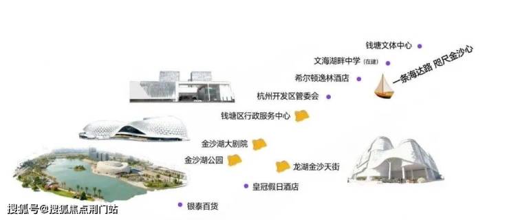 也不仅仅是金沙湖,沿着海达路驱车出行约2公里,你还能看到整个金沙湖CBD的精华:钱塘图书馆、钱塘问题中心、希尔顿酒店、金沙天街、金沙大剧院、银泰百货等都陈列在这条道上。