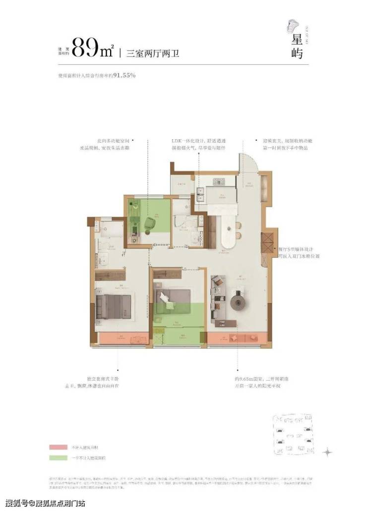 神户型:得房率最高约100%