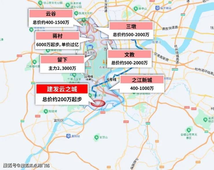 再来看,与同为西湖区的新房相比,不说那些贵的离谱的,就单看西湖区入门门槛:之江新城、云谷高层总价约400万级起,三墩高层总价约500万级起,低密的产品自是更不必说了,动辄2000万。
