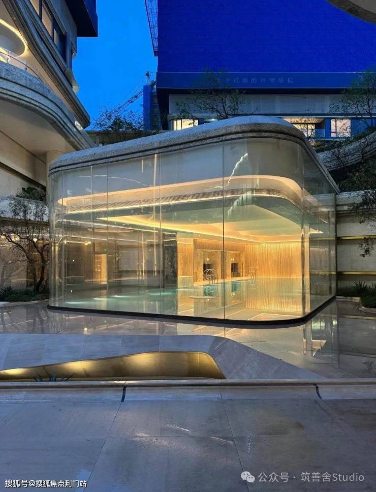 下沉庭院宛如自然界的幽深溪涧,独具匠心的高低起伏,充满不规则的自然曲线。尽管由石材与玻璃构成,却散发着浮岛般的翠绿与卵石的天然韵味,蕴含着扎哈设计的精髓。其中最引人入胜的亮点,莫过于斜倚庭院之中的恒温泳池。是的,它确实是室内泳池,以弧形落地玻璃窗相隔,既享受恒温暖意,又仿佛沐浴阳光之下,畅游于园林之间。这座庭院,成为一件独一无二的非标艺术品,专为杭序府量身打造。