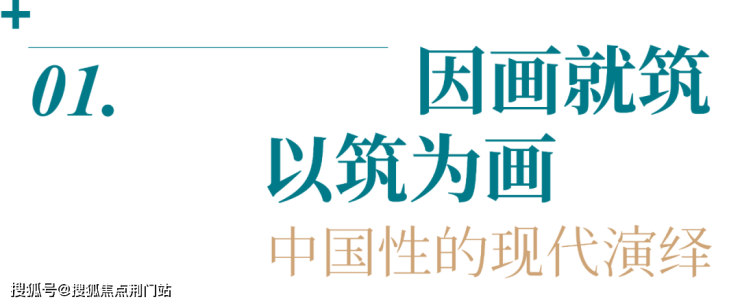 在公区入口,建筑师提取画中的山石、流水、楼阁、青松等元素意象,将之分别转译为建筑的基座、立面、屋面、景观小品等空间要素。“以筑为画”——以建筑的空间要素来重新绘就一幅“可实景体验的山水画”,并借助曲径通幽的动线设计进一步引人入画。在路径视角、环境感知的变化中,实现了画意与空间的第一步转换。