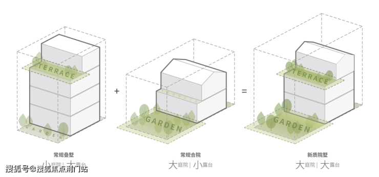 院墅建筑的体块和立面处理则跳出了以往由物及形的思路。我们尝试回到当代人居生活的原点,以采光、景观、庭院和露台的多样生活场景作为设计的出发点,由内及外地形成空间体型。在确保居住需求和现代生活场景的基础上,最大化露台和庭院的使用面积,满足现代居所对生态景观和自由松弛空间的需求。