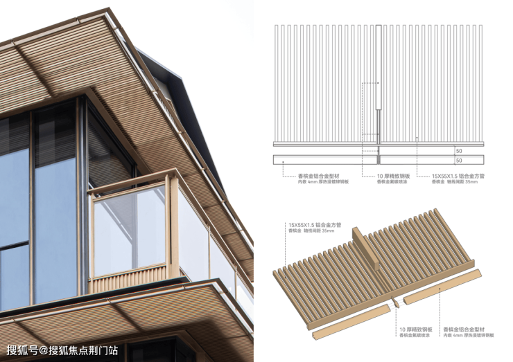 出檐部分的单元化金属格栅,使建筑整体体量更显轻盈与丰富,同时兼顾露台的遮阳和私密性需求。