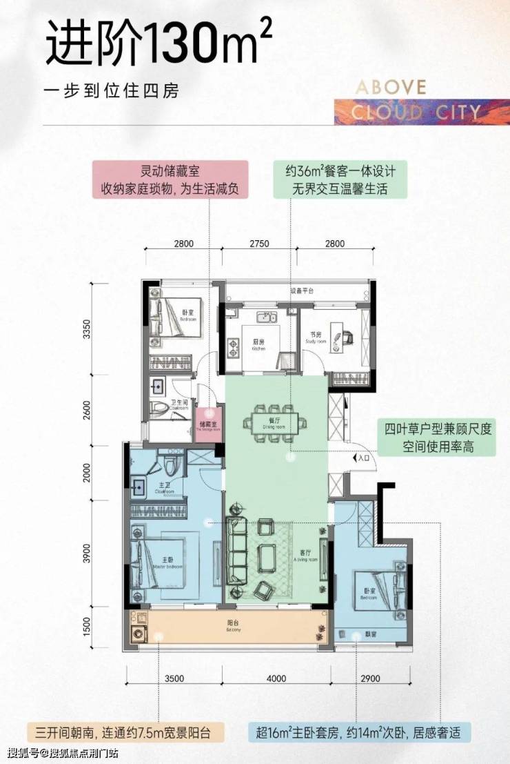 约130㎡四房户型更能满足改善家庭的需求。