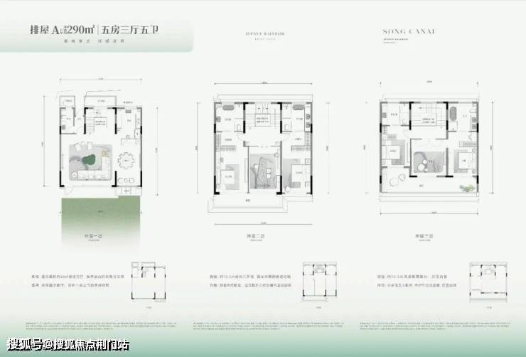 其中排屋产品,主打两个户型: 建面约290㎡和舒适度更高的建面约324㎡,可以根据不同家庭结构,规划为四房。