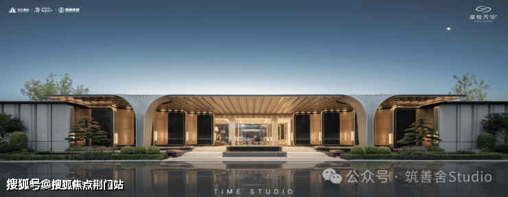 大门还是不错的,延续着卷大门的风格,一个刚需盘能有这样的大门已然相当不错了。萃取东方礼制精髓,沿东西向主轴设置多重归家院落,形成主入口至迎宾水院及度假水池为一体的礼序归家轴。层层递进的空间,在步移景异中,营造出多重归家仪式。
