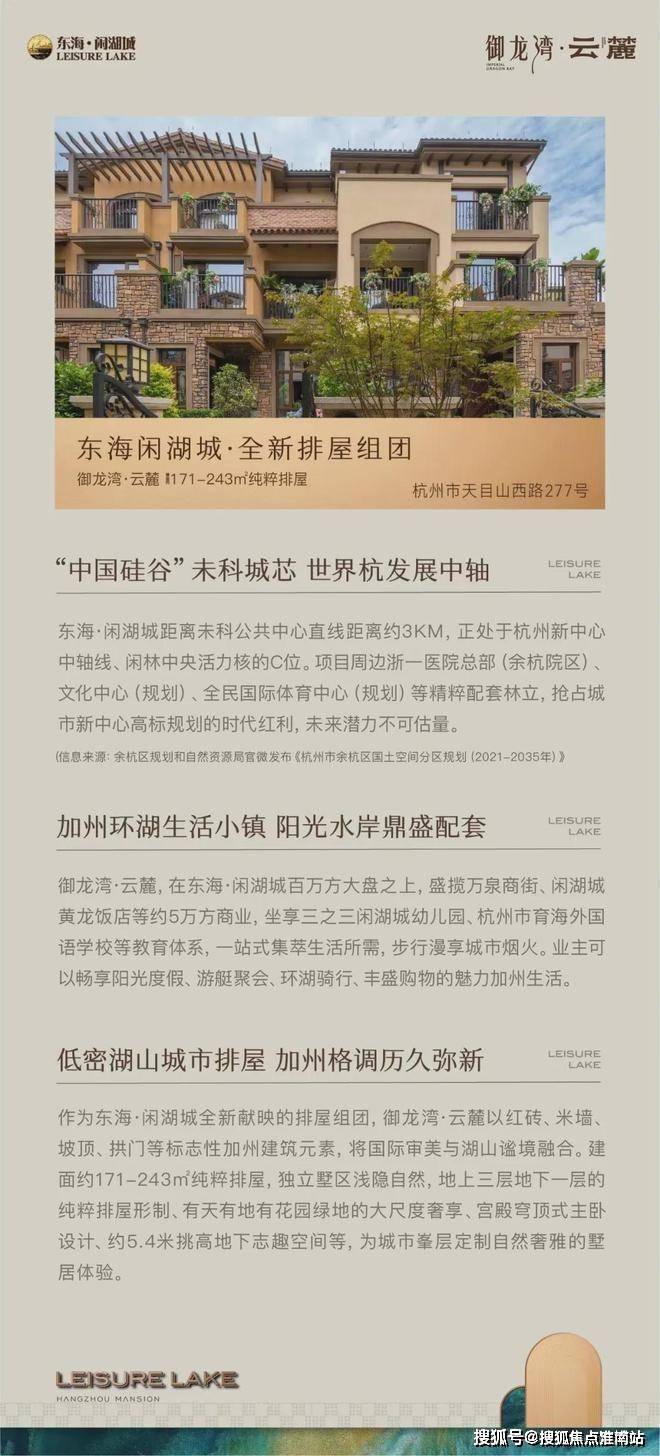 越期待越臻藏!不久前刚刚上映未科芯的东海·闲湖城全新排屋组团御龙湾,为城市精英敬献总价600万+级的纯粹低密排屋,在杭州演绎繁华静谧的自然奢居。近日,御龙湾·云麓即将首开,以私家湖畔的墅居生活,在未科芯掀起争藏热潮。