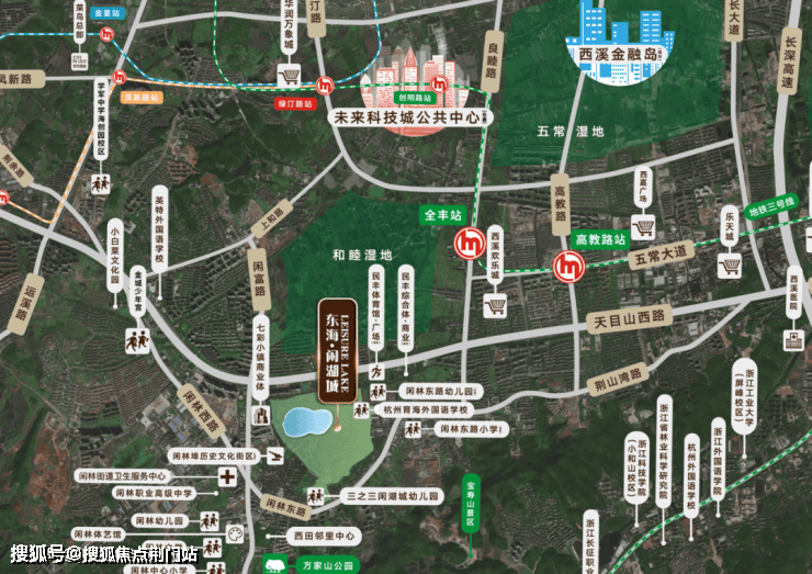 东海·闲湖城北面直线距离约3.5公里处,就是正在建设的绿汀路TOD,上盖的华润万象城正在热火朝天的建设当中;边上就是即将开建的未来科技城公共中心,共同组成了未来科技城的又一个引擎。此外,杭州西站已经通车,约399米的杭州第一高楼正在向天空生长;浙一医院一期已经开业,二期还将增加2000床位......
