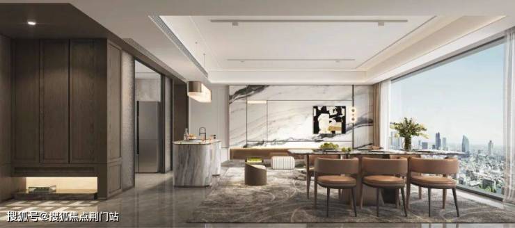 客厅、餐厅、厨房、阳台等,是家庭社交发生的载体,打破公区间的隔阂,形成通透完整的空间已经是当下品质住宅的标配。围绕着完整公区,我们试图植入更多的场景模块和动线模式,实现 家庭关系从 " 物理共存 " 到 " 情感共融 " 的进化跃迁 。