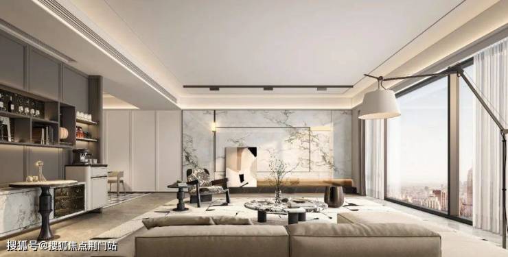 公共建筑的设计手法,通过大面积幕墙 窗 体系替代传统住宅 的 立面 。蓝灰色玻璃幕横向辅以金色线条,勾勒出现代艺术感的流线立面。 这种设计不仅让建筑外观更具现代质感,更重要的是 将 每户采光面较传统住宅提升了约30% ,在确保私密性的同时,实现了 ‘ 引光入室 ’ 的居住体验。这种处理方式既符合 规划对区域 城市风貌 的 管理要求,也让住宅突破了传统采光局限,实现了美学价值与功能升级的双重突破。