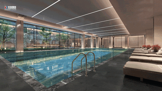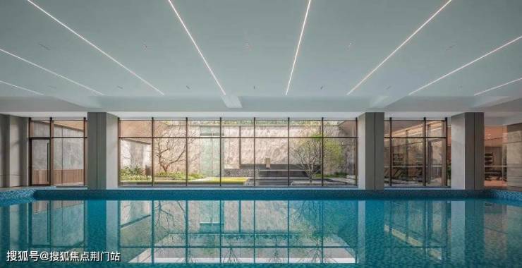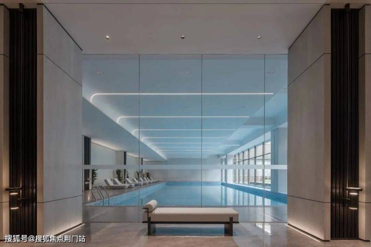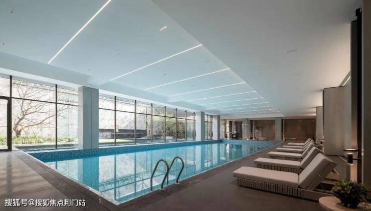 步入远超[4万级」配置的下沉式会所,就可以看到约250㎡的无边恒温泳池,泳池区还配备了完整的淋浴、休闲躺椅等功能,加上溢水式的边缘设计,配合屋顶灯带,让人有更畅快和更通透的遨游感。