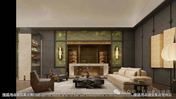 归家礼序:奢阔门头+一轴八境园林:打造约63米宽、9.1米高的超全画幅恢宏门庭,融合金属格栅与天然奢石,以酒店级匠造标准诠释当代世家气派;园林布局取意三大宋画,融合杭州山水精粹,打造“一轴八境”景观,通过假山、叠水、屏风等元素,再现《四景山水图》的移步易景之美,窗前皆有景可赏。