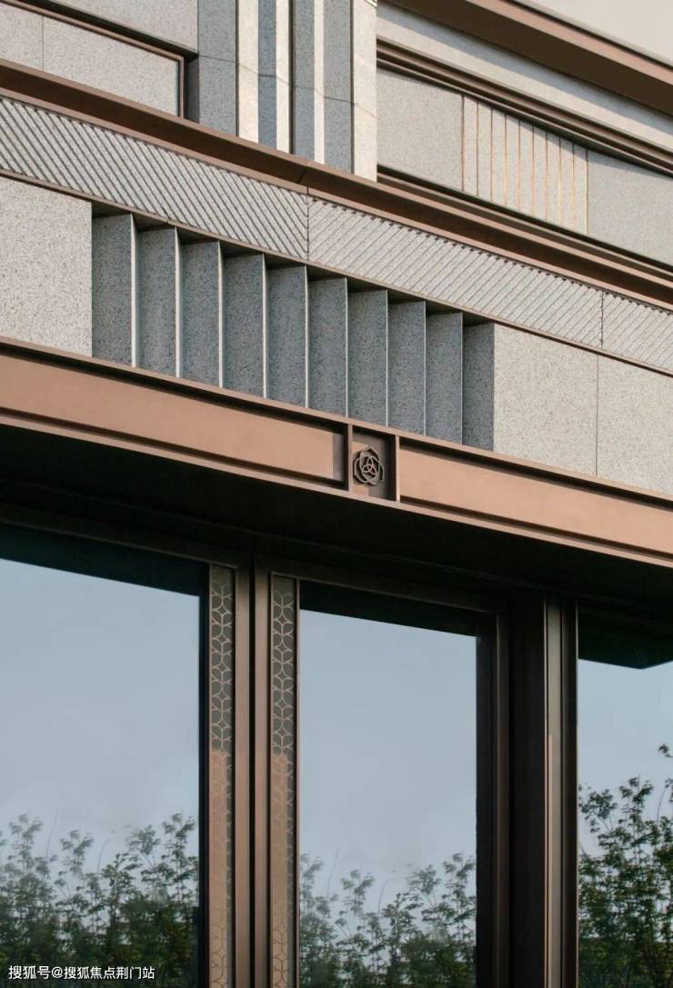 立面结构采用西方古典建筑经典制式“横三竖五”进行立面切分,如基座、中段、塔冠分为三段式,竖向阳台、飘窗分为五段式,极致中轴对称。设计以承载美为出发点,采用纯粹和质朴的空间和材质,从古典形态中提炼出简洁而有力的符号,强化了建筑的形式感和空间感。
