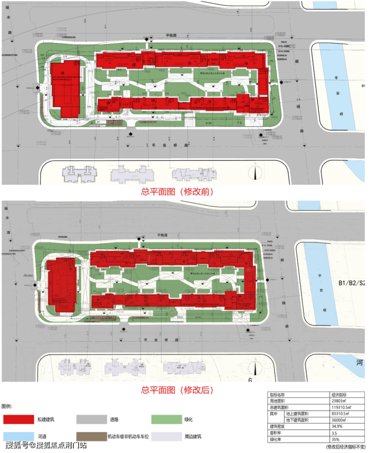 但就在近日,项目公示修改,外立面以及商业部分都有更改,楼幢的装饰构件更换,相当于重新出了效果图。