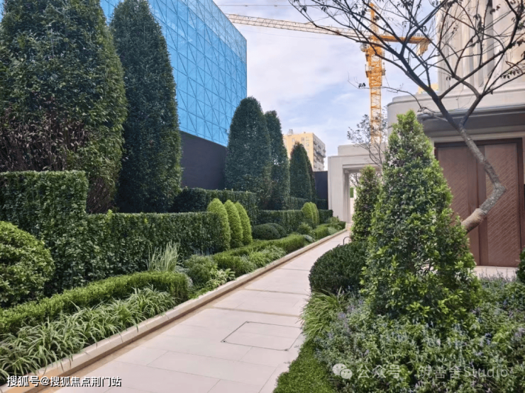 中庭景观借鉴法式园林的对称美学,构筑中轴景观。