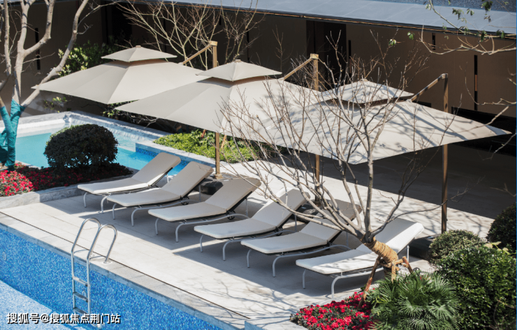 宽檐主入口约30米,实现酒店式的无风雨落客。走进挑高的酒店式入户大堂,电梯能够直通地下室,无论什么天气,回家之路都会相对更加安全舒适。透过落地玻璃,整个下沉式会所映入眼帘。度假感露天戏水池,还配备了健身房、瑜伽室、更衣室、棋牌室等功能空间。目前杭州很多5-7万元/㎡的顶豪,也少见同时配备露天戏水池及会所。