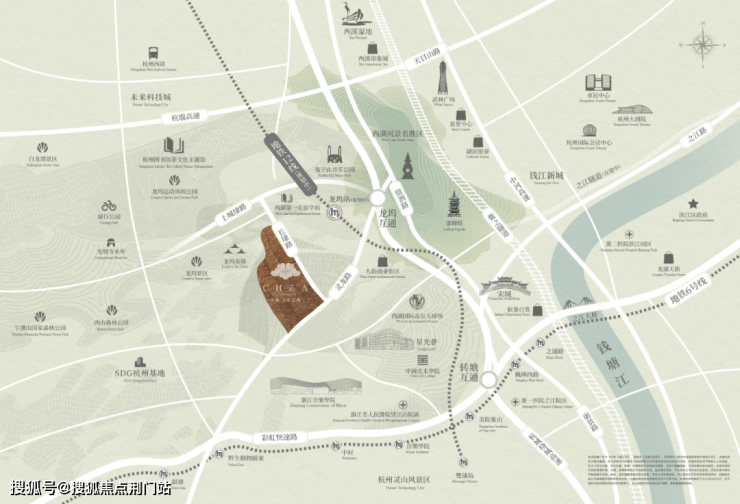 此外,从大杭州地图上就可以看出,龙坞向东对望钱江新城,向南是滨江-奥体,向北是未来科技城-云城,恰好是三大城市中心交汇的正C位。入则宁静,出则繁华,这种居住氛围,在杭州再难找到第二处。