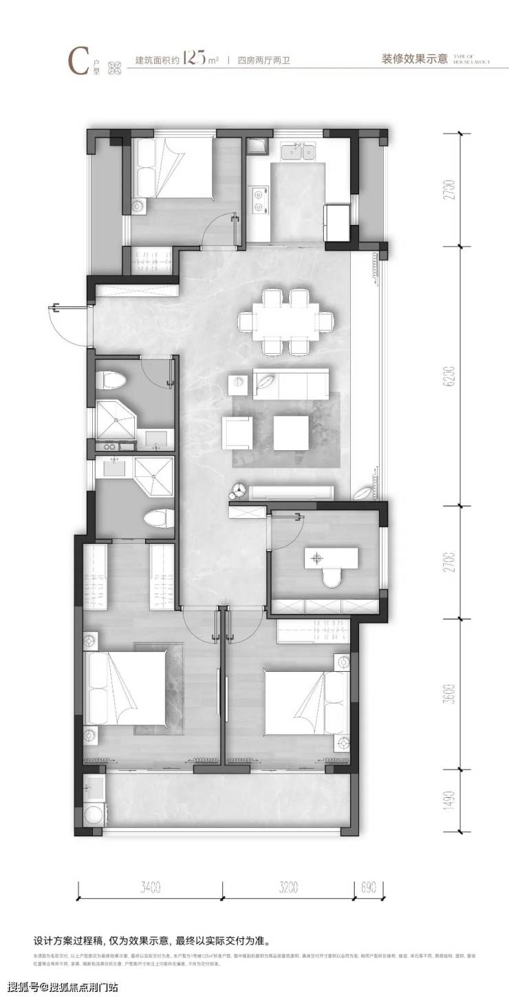 奢阔四房是生活排场和舒适感的双重叠加。让人一眼心动的大边厅+约6.2米大飘窗,化作“PARTY厅”,无论家宴、私宴,都彰显着人情味最浓的款待方式;南向约6.6m双开间阳台,套房式主卧等都深度诠释着改善真谛。