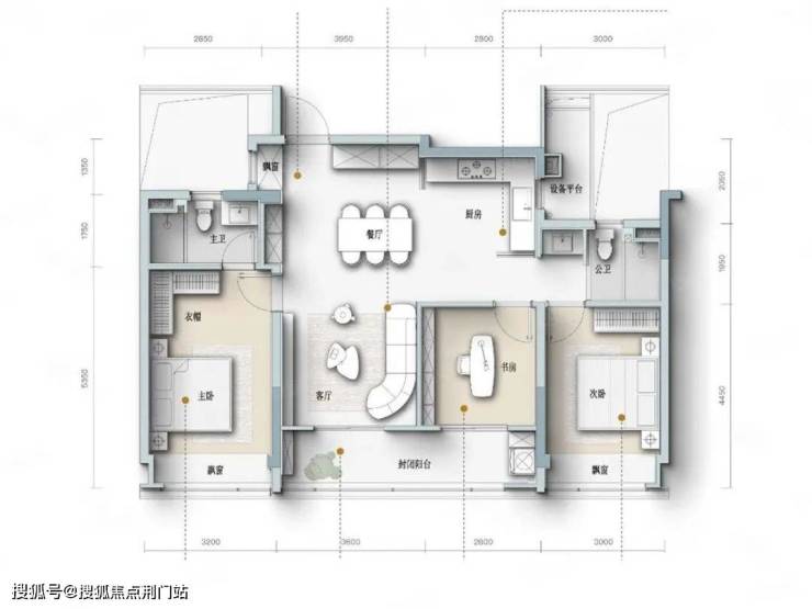 四开间朝南设计,主卧套房设计,宽景封闭式阳台。