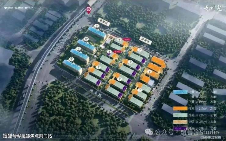 容积率仅有1.1,限高30米,规划了91套建面约217-298方联排别墅、72套建面约198-210方叠墅、21套建面约284方合院,联排别墅占绝对主力。