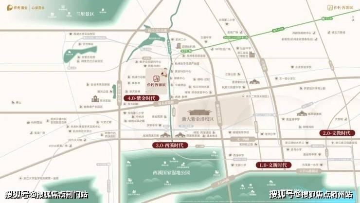 保利西源赋落子西湖区紫金港板块,紧邻浙江大学紫金港校区,坐拥西溪湿地余脉塘河稀缺水景资源,是西湖主城绕城内唯一在售叠墅项目。