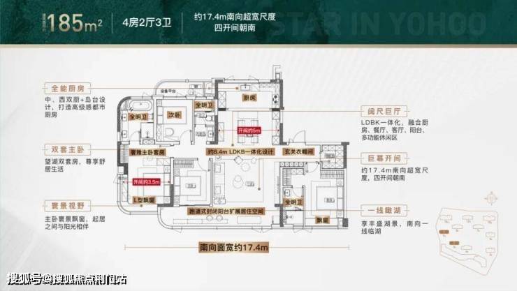 项目根植于玉湖板块独特的“湖+城”基因,185方户型以约17.4米南向瞰湖视野,将玉湖的四季晨昏无缝引入室内,实现“推窗即景、移步换景”的沉浸式居住体验。