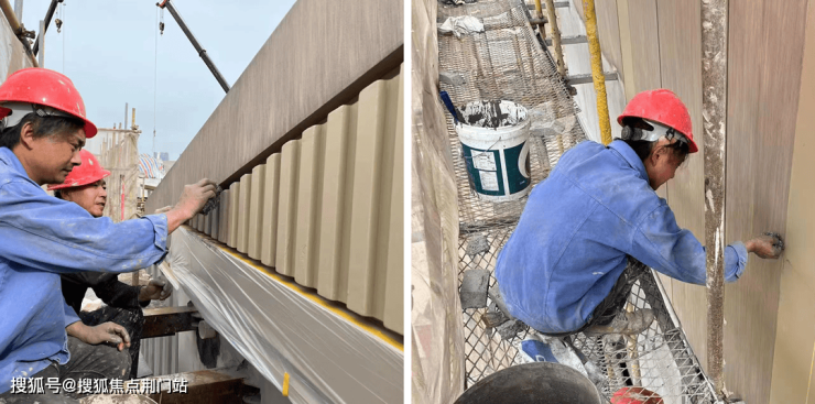 青绿色瓷管经过多轮选材,最大程度保留青瓷的典雅质感,确保在自然光线下呈现温润的意境。金色型材作为点缀,镶嵌于建筑细节中,也增添了视觉层次和精致度。