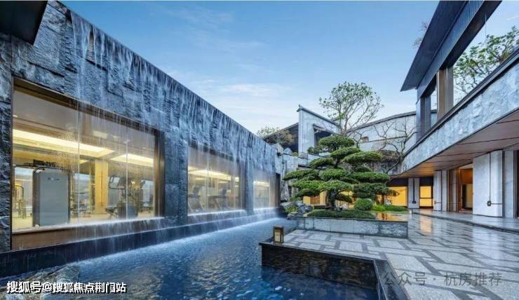 瀑布跌落之处,正是南区的下沉式会所。透过整面的落地玻璃,倾泻而下的流水近在眼前。