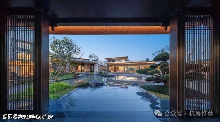 宽约46米、高约8米(含两侧景墙)的禅境新中式门头气宇轩昂。两侧对称布置照壁、石狮子和罗汉松,充满着东方大宅的威仪。