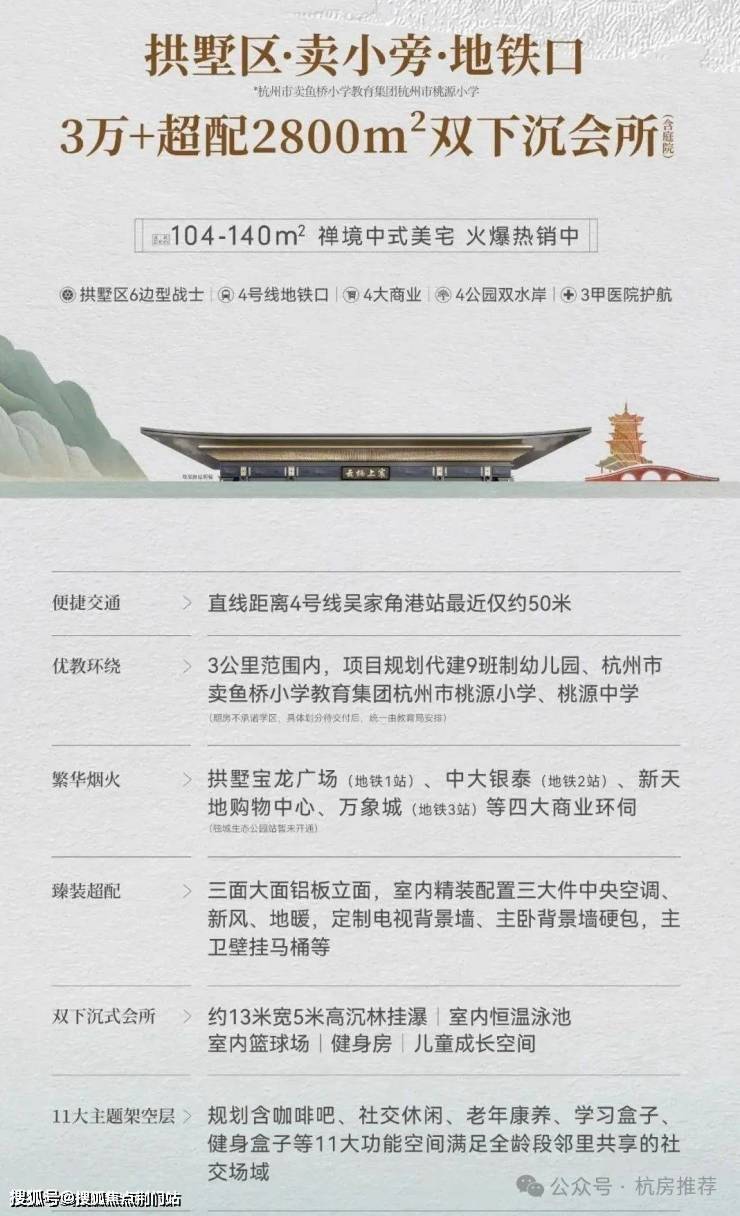 云栖上宸:即将清盘、拱墅唯一地铁口、104-130方精装住宅、四号线吴家角港站50m、西侧50米卖鱼桥桃园小学分校