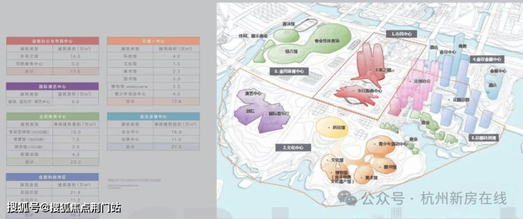 杭州第三中心核心区(中轴线)全长约2.5公里,总面积为约1.55平方公里。聚焦打造五大城市功能板块,包括市民公园、国际商务区、艺术文化商业街区、未来总部区、国际滨水文化区。将形成一个集商业、酒店、教育、创意、创新、自然和生态为一体的中心,成就杭州城市未来新地标。整条中轴线的方案也是由国际【福斯特事务所】中标设计。