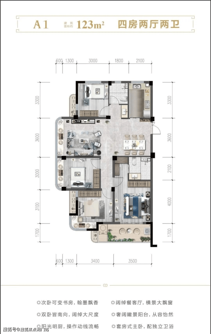 🌟户型细节:瞰景阳台的转角皆优化为圆弧形设计,不仅体现了柔和的美感、也进一步提升了产品独特品质感。
