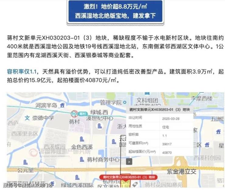 3月28日的杭州土拍,蒋村“低密”地块楼面价更是上涨至88029元/m²,仅仅3天就再次刷新了记录,成为杭州新的单价地王,「低密」的含金量再超预期。