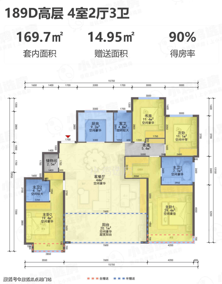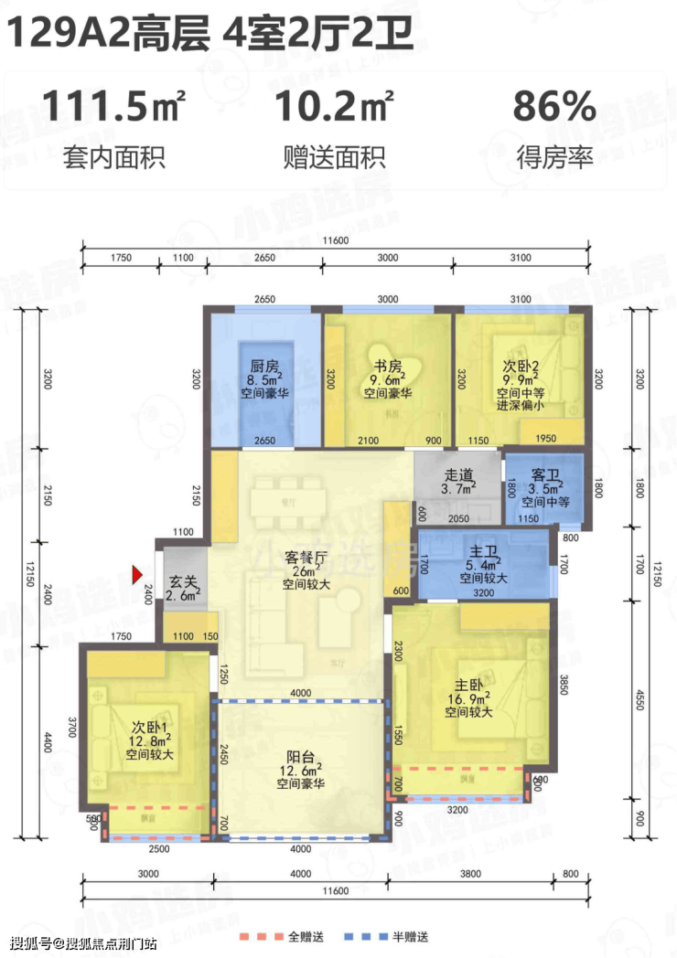 【得 房 率】:含赠送86-90%