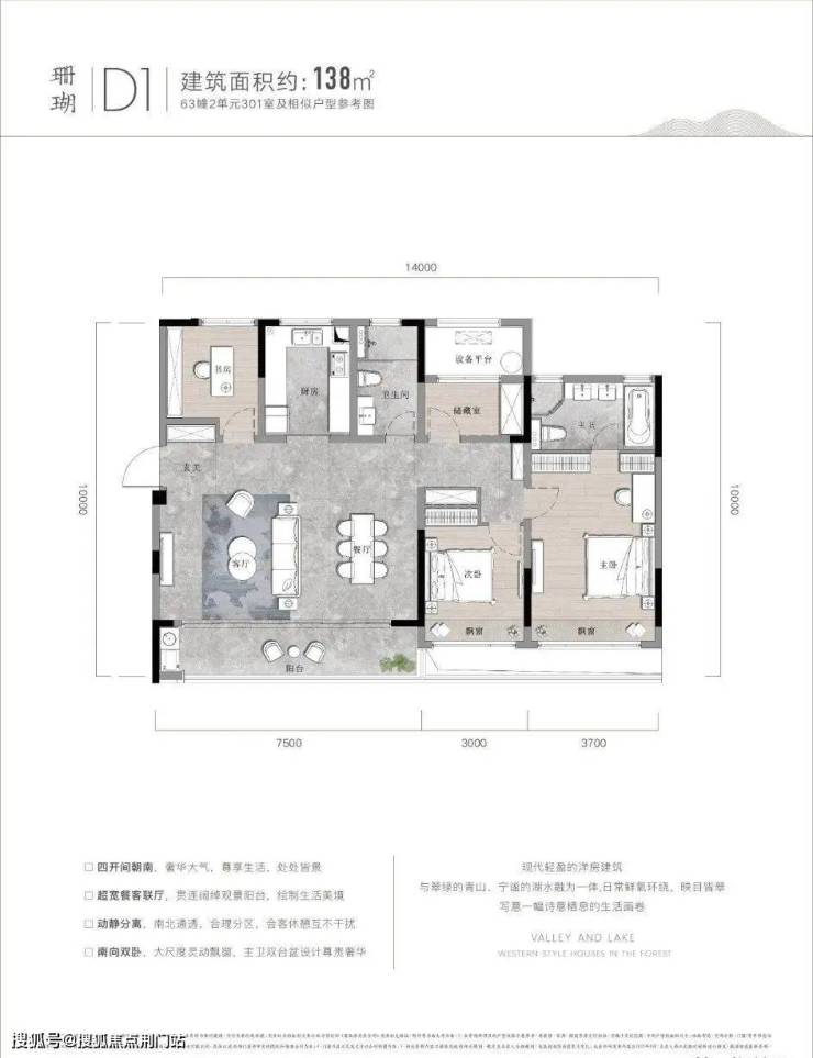 户型点评优势:双阳台设计,完美匹配湖山美景。客餐厨动线合理,观景飘窗连通了室内室外两重空间。南北通透、分区合理,尤其是储藏室的设计,十分贴心。99㎡的大两居,恰到好处地放大了各个功能区,整体看过去十分舒畅。