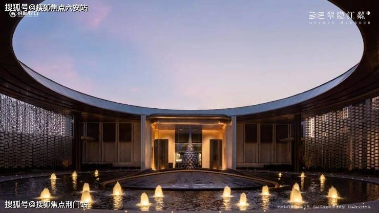 你看社区大门宽约46米,高约9米,灵感源自“京杭大运河博物馆”设计,顶部大约2280块水晶瓦精心雕琢,内部超300块金鳞铝板手工拼接,还有层叠水景,整个一看就贵气。