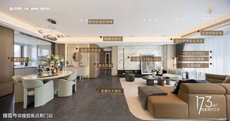室内精装标准也还不错,东芝中央空调、地暖、新房三大件齐全,配置有大理石地面、木饰面墙面、大理石电视机背景墙等。