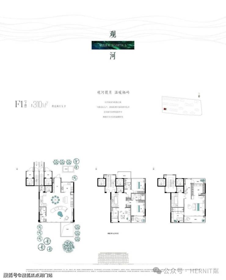【项目规划】7栋19-22F高层,6栋6+1F叠拼,仅397席【户型配置】建面约186-241㎡奢雅大宅,建面约237-364㎡水岸叠排