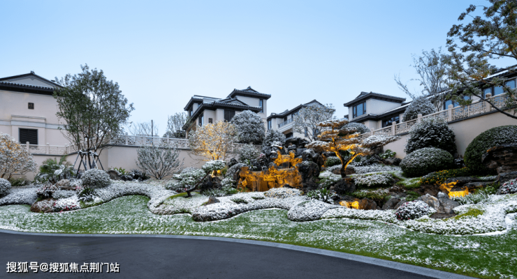 而融萃东方造诣的别院建筑,则利用天然坡地高差,错落有致铺排,棱角分明的中式屋檐与坡顶,为建筑整体增添厚重与典雅,营造出温暖的归家仪式感,仿佛静静等待即将归来的家人们,在冬日尽展温情。